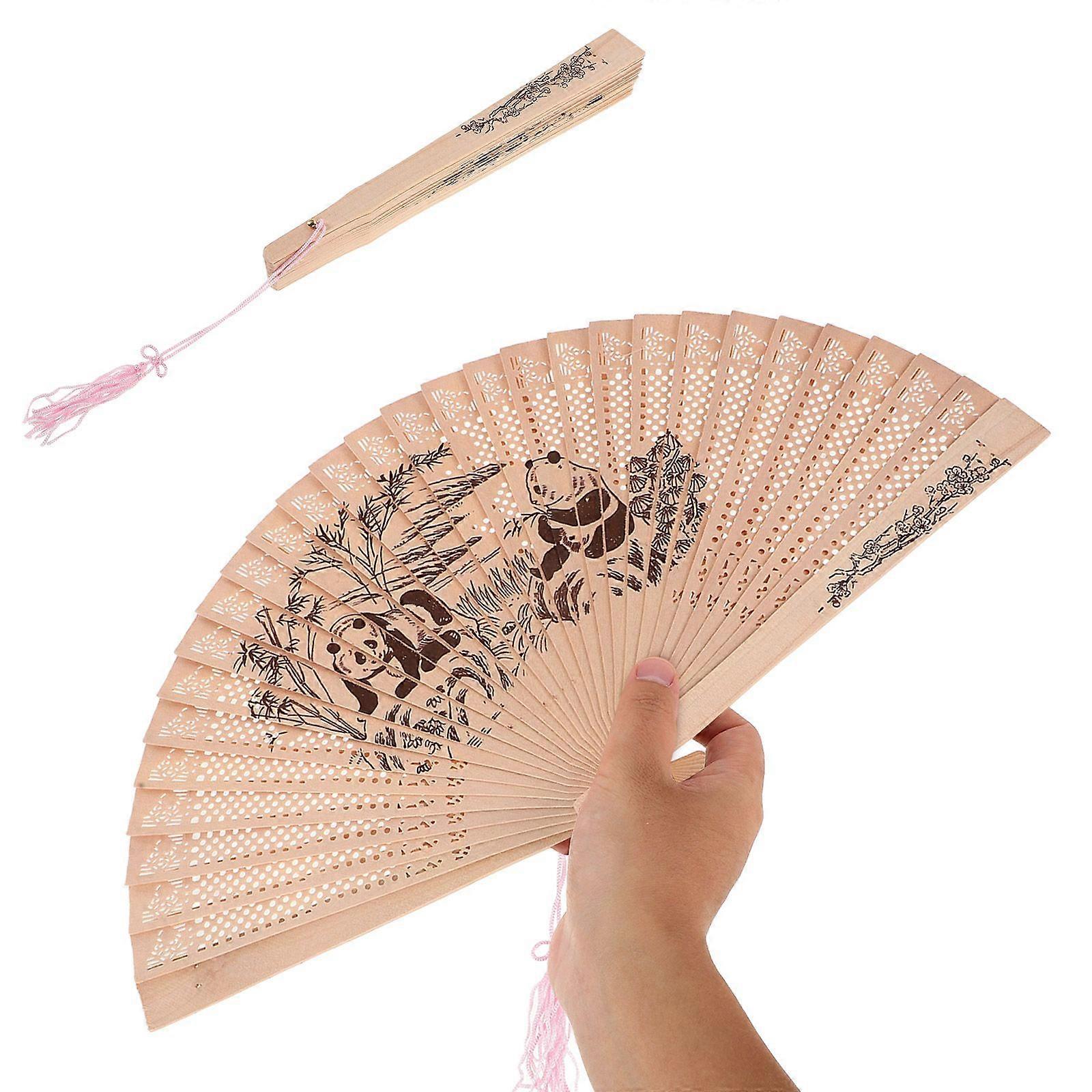 Sandal Wood Foldable Fan Elegant Ancient Fan Lovely Hollow Hand Fan for Summer Decor (Panda)