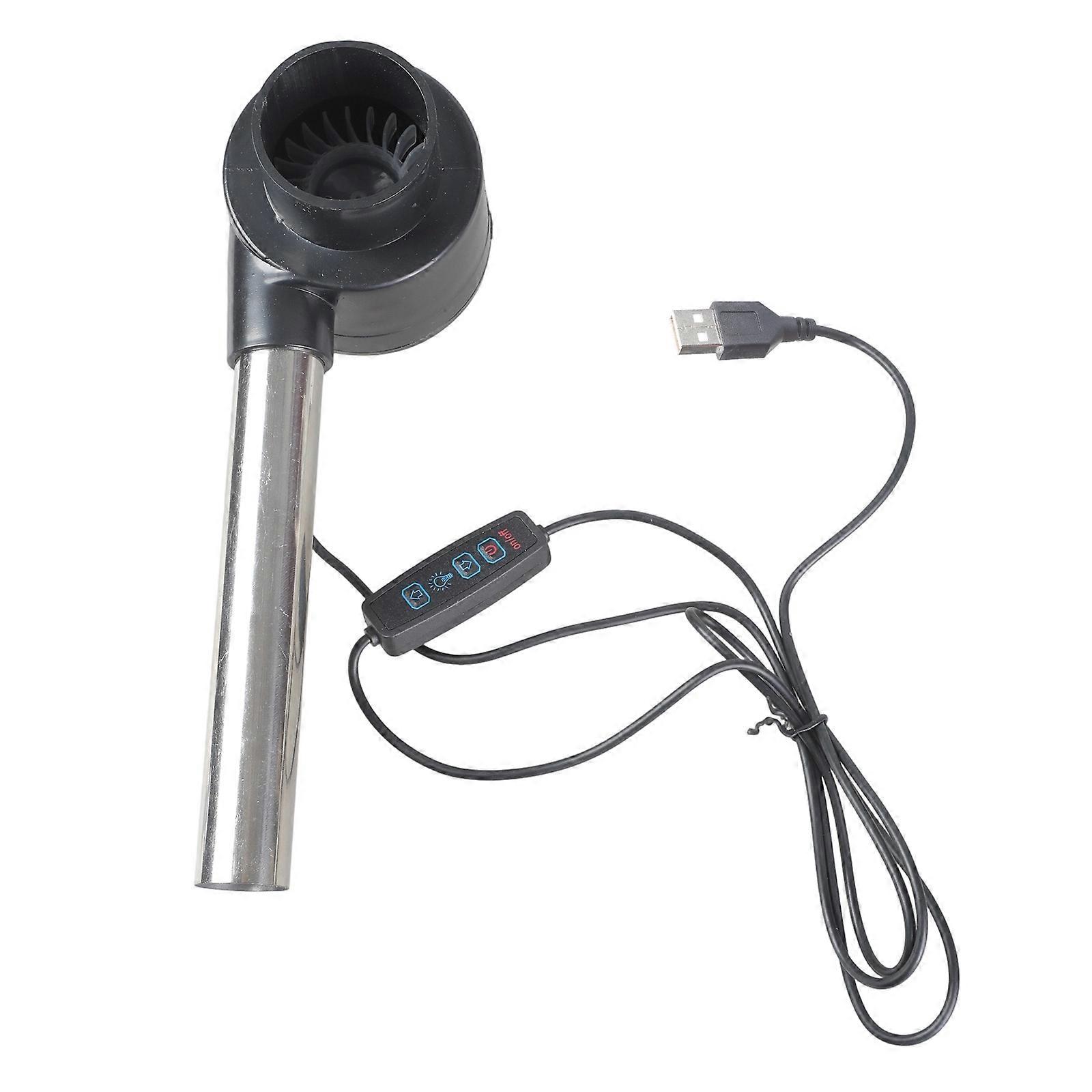 Features: Boosts your fire starting efficiency with this 5 speed USB powered blower featuring a 14.5cm air duct and 140cm extended cable for versatile outdoor/indoor use. Engineered with a multi gear airflows control systems and ABS plastic construction, this compact electric air blower delivers targeted wind force through its extended nozzle. Essential for campers, BBQ enthusiasts, and homeowners seeking portable ventilation solution for firepits, grills, or workshop cooling needs. Optimize campfire ignition, accelerate charcoal burning, dissipate cooking smoky, or cool electronics effortlessly across backyard gatherings and wilderness adventures. Its USB compatible design integrates seamlessly with power banks and laptops, offering cord flexibility for unrestricted operations in garages, patios, or remote camping sites. Specifications: Component: Plastic + Metal Voltages: 5V2A Size: Dimension of air duct, length 14.5cm, diameter 2.5cm, fan size 7.7x8.8x5cm Line length: 140cm Package Includes: 1pcs Electric Blower note: 1.Please allow 1-2cm errors due to manual measurement, make sure that you donot mind befores you order. 2.Due to the differences between different monitors, the picture may not reflect the actual color. Thanks for your understandings.