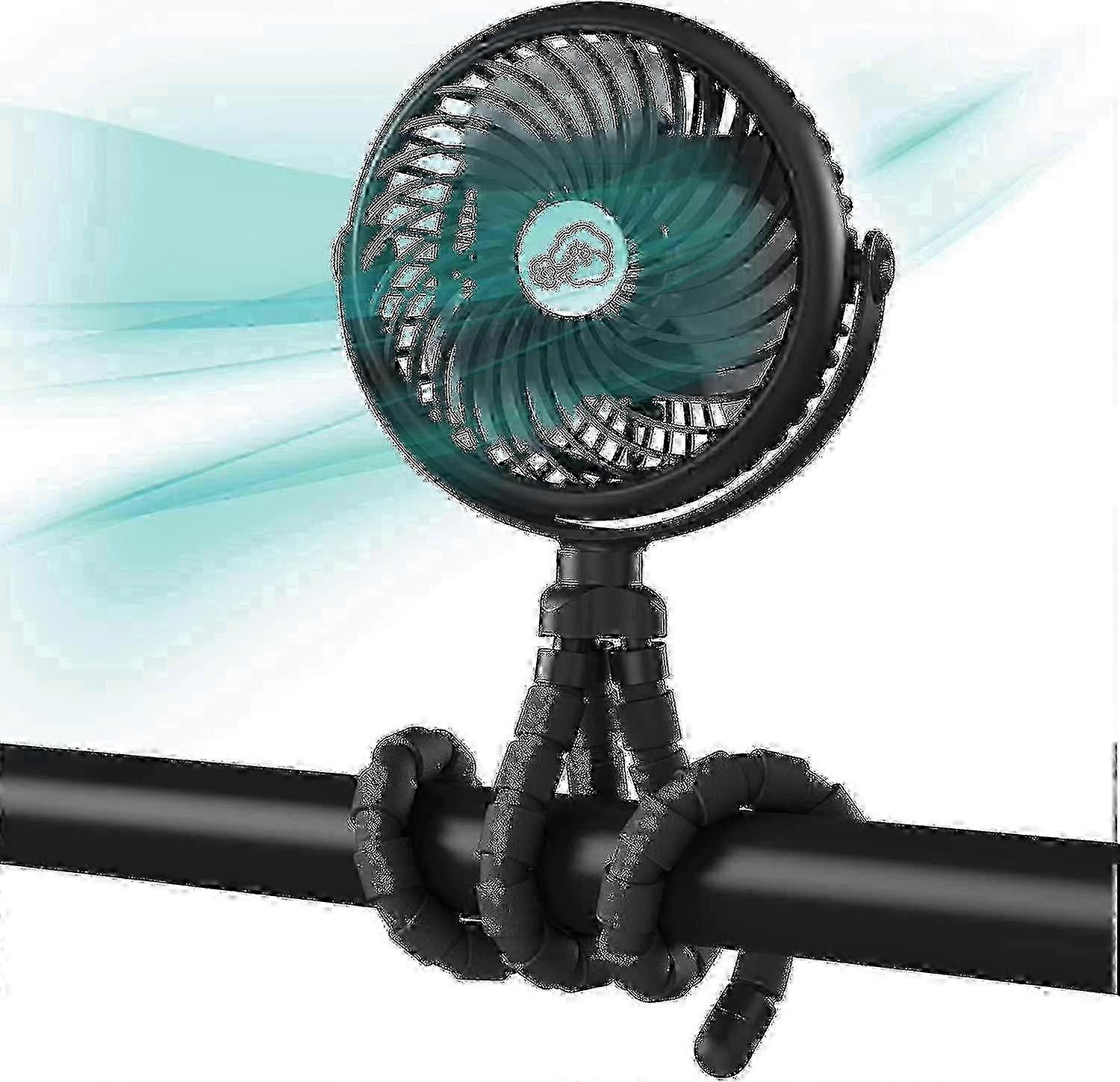 New 2023 Battery-Powered Stroller Fan with 5200mAh, 3-Speed Settings & Rotatable Flexible Tripod Clip