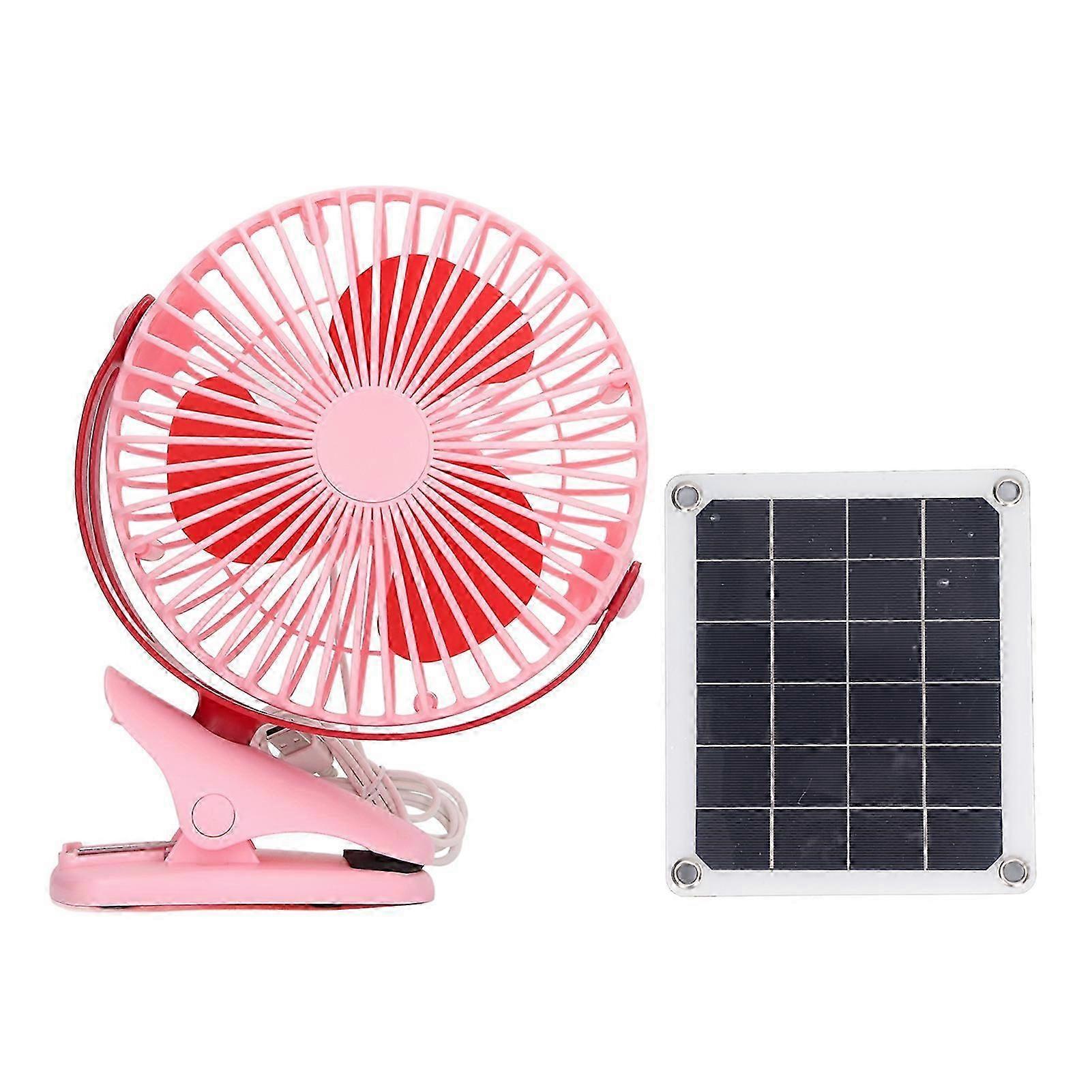 Solar Panel Fan Portable Clip On USB Fan Small Desktop Cooling Fan for Indoor Outdoor Activities Pink