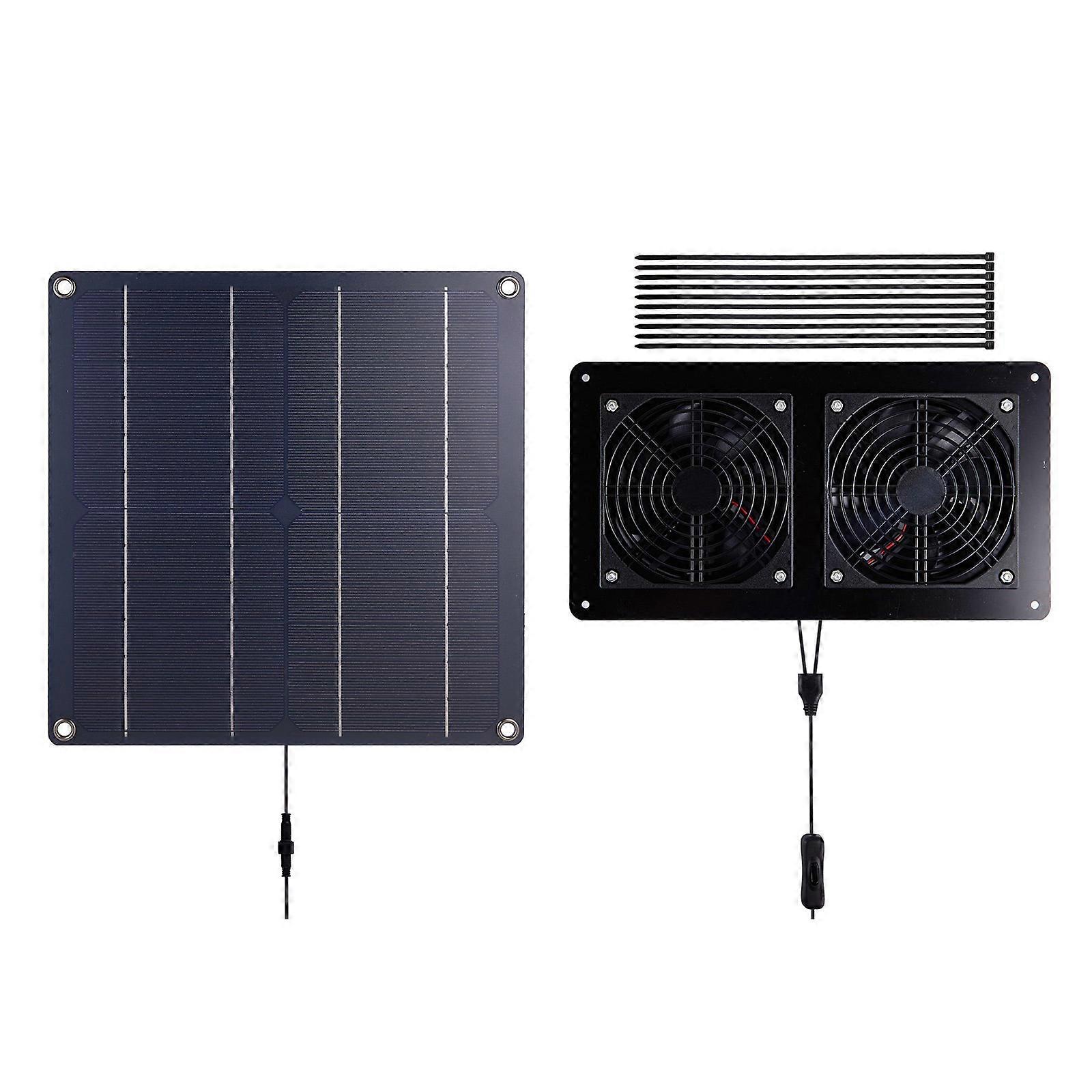 Features: The fan solar panel kits can exhaust indoor hot air and effectively reduce indoor temperature. Operate: When sun shines at the solar panel, connecting the interfaces and the fan can start. When the sunlight is insufficient, the fan will work slowly or even stop working. Easy to use: Place the solar panel in a place that can receive sunlight, install a fan, and connecting it for use. None Wiring usage is flexible. Epoxy resins surfaces lamination, waterproof, improves durability. The solar panel fan kits can be used in homes, greenhouses, utility room, pet houses. Specifications: Component: Monocrystalline Solar panel power: 15W Solar power operating voltages: 12V Output port: Female DC5521 Cable length: 300cm/118inch(with switches) Fan: Fan Power: 2pcs 3W Rating voltages: 12V Speed: 1800RPM±10% airflows: 69.6 CFM Statics Pressure: 2.7 mmH2O Noise levels: 35.7dBA Package Includes: 1set Solar Panels and Fan note: Please allow 1-2cm errors due to manual measurement, make sure that you do not mind before you order. Due to the difference between different monitors, the picture may not reflect the actual color of the item.