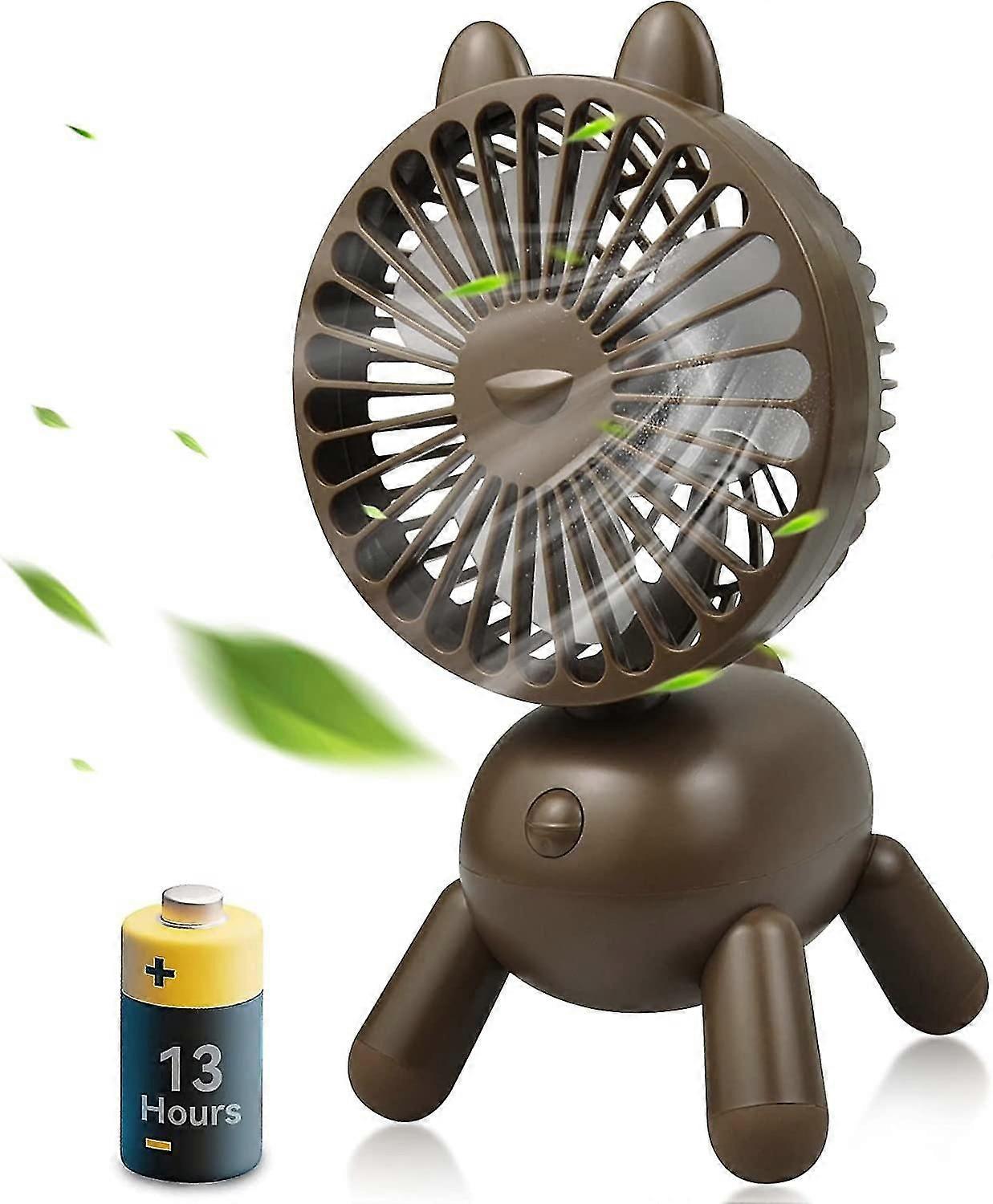 Small 20.3 Cm Rechargeable Rotating Desk Fan 13 Hours Use, Portable Puppy 3 Speed Cooling Desk Mini Personal Fan For Home/room/office, Brown