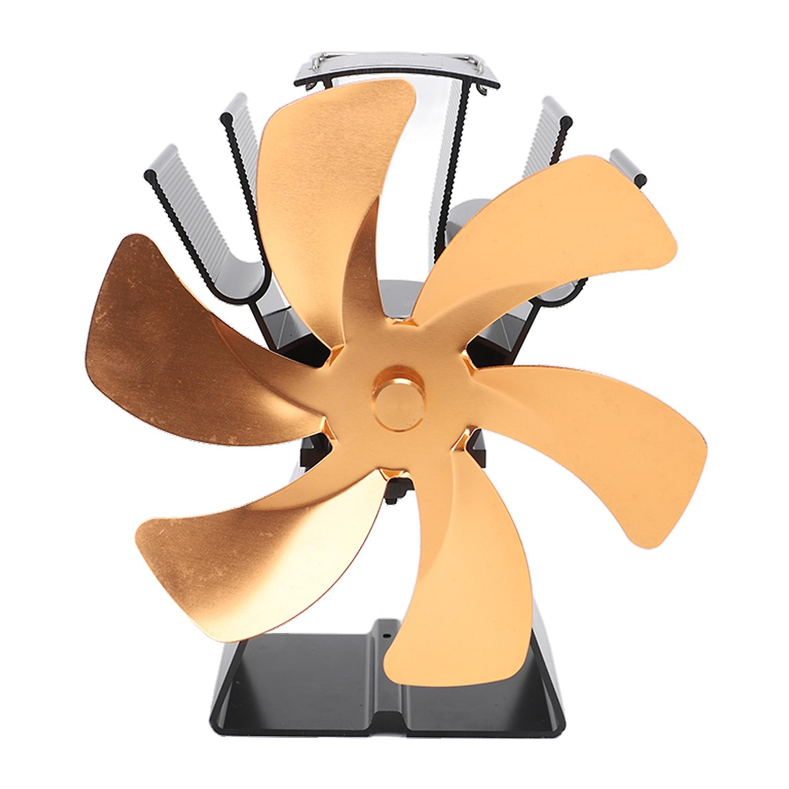6 Blade Heat Powered Stove Fan Aluminum Alloy Manual Control Fireplace Fan for Wood Burning Stoves Pellet Log Burners Desktop Gold