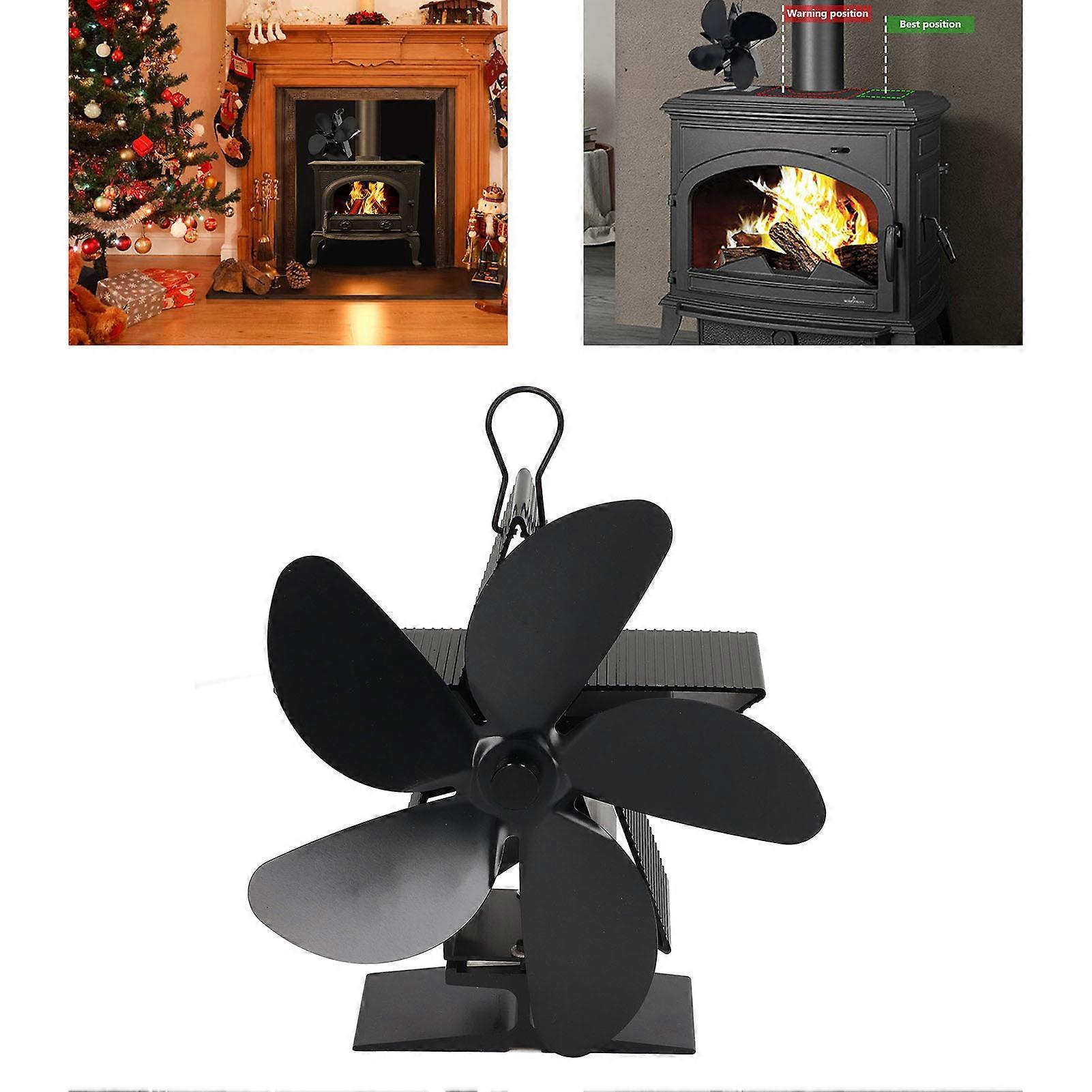 5 Blade Wood Stove Fan Black Automatic Start Non Electric Safe Heat Powered Fireplace Fan