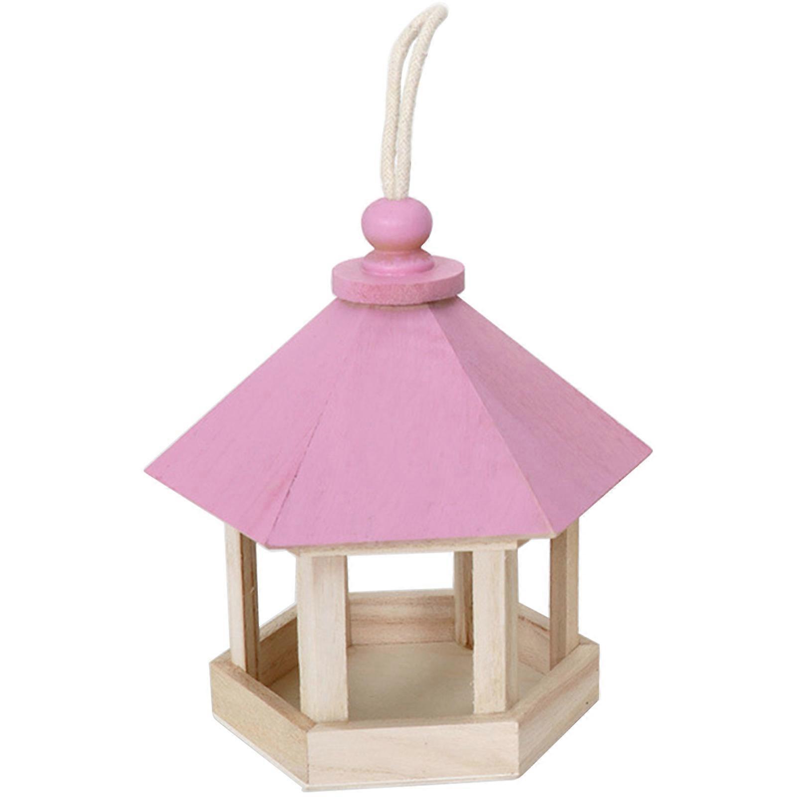 Wooden Wild Bird Feeder with Sloping Roof Hanging Wood Birdhouse for Outside