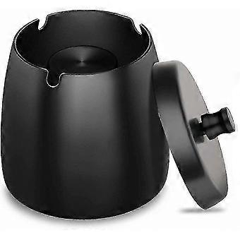 Black Stainless Steel Ashtray with Lid, Non-Slip Base for Indoor and Outdoor Use in Gardens, Bars, and Offices