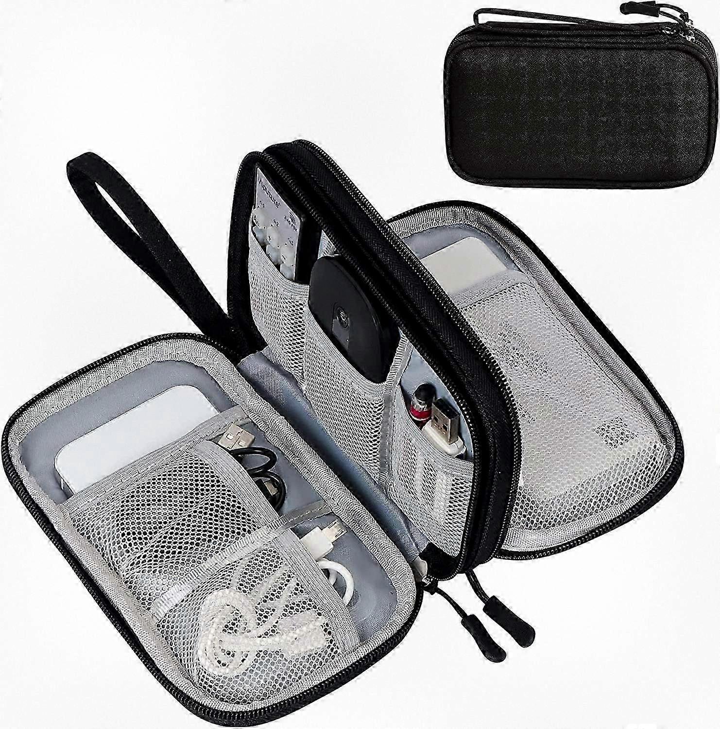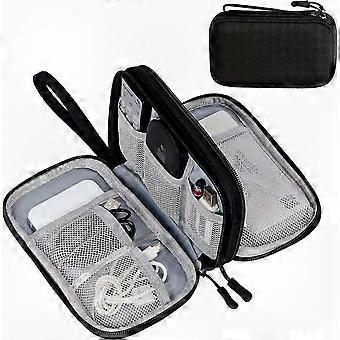 Portable Waterproof Double Layer Electronic Organizer, Travel Bag, Pouch, Carry Case for Cables, Chargers, Earphones, and Phones in Black