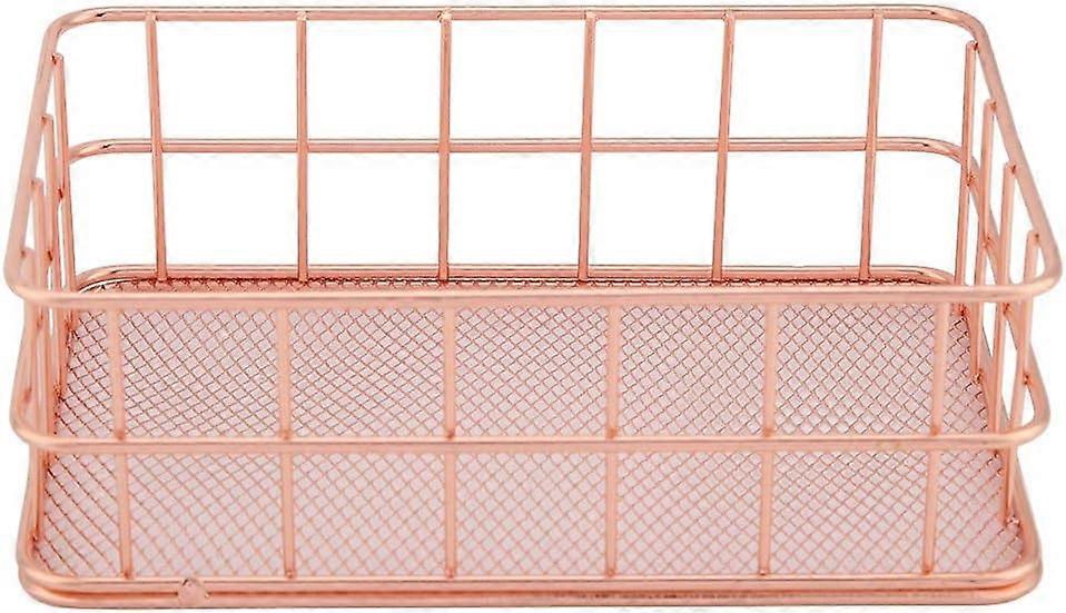 Rose Gold Iron Storage Basket Organizer - Desktop Decoration