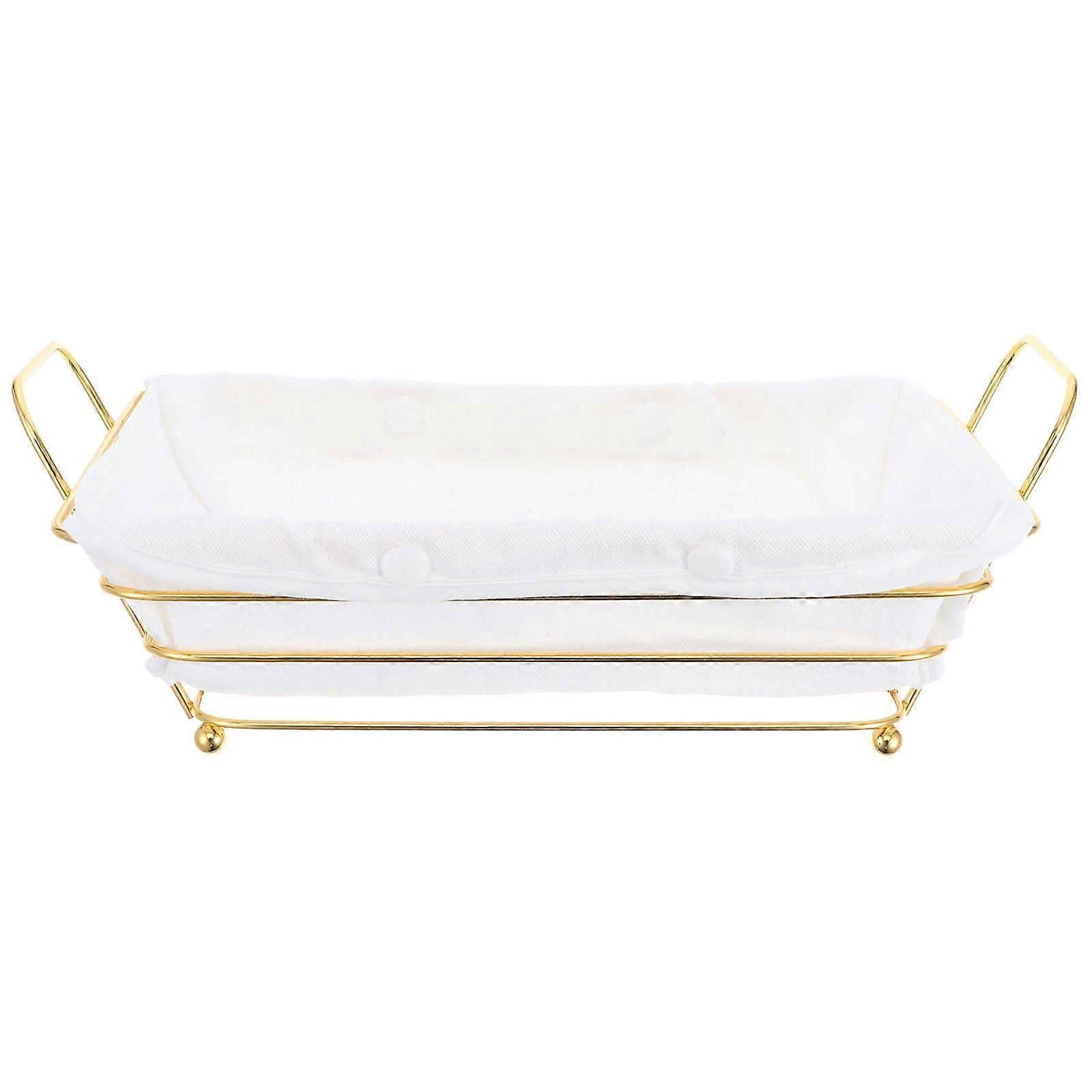 Description This versatile gold wire basket is Ideal for organizing your kitchen counter. Its elegant design also makes it an excellent decorative tray for serving bread and pastries during a kitchen party or a casual family breakfast. Features -Color:Golden -Material:Iron -Size:29.50X19.00X10.00cm/11.59X7.47X3.93in -Multifunctional design: this rectangle basket is Ideal for storing bread, fruits, and miscellaneous items, making it a versatile addition to your home. -Elegant hollow design: the intricate hollow design not only adds a touch of elegance but also ensures practicality, making it a beautiful and functional piece -Durable iron material: made from iron, this basket is sturdy and durable, ensuring it won't easily deform and will last for years -Minimalist ins style: the simple and stylish design makes this basket suitable for various home decor styles, adding a modern touch to any room -Large capacity: with its spacious design, this basket meets all your storage needs, whether it's for bread, fruits, or other items, keeping your space organizedPackage list: 1 x iron storage basket