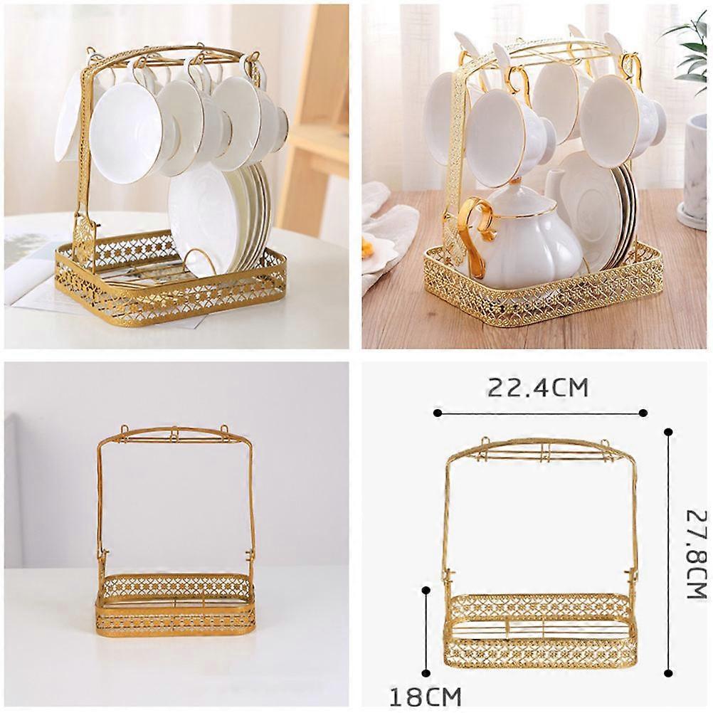 Coffee Station Organizer Rack Cup Organizer European Holder Wrought Iron Golden 27.8 x 23.4 x 18cm 1Pack