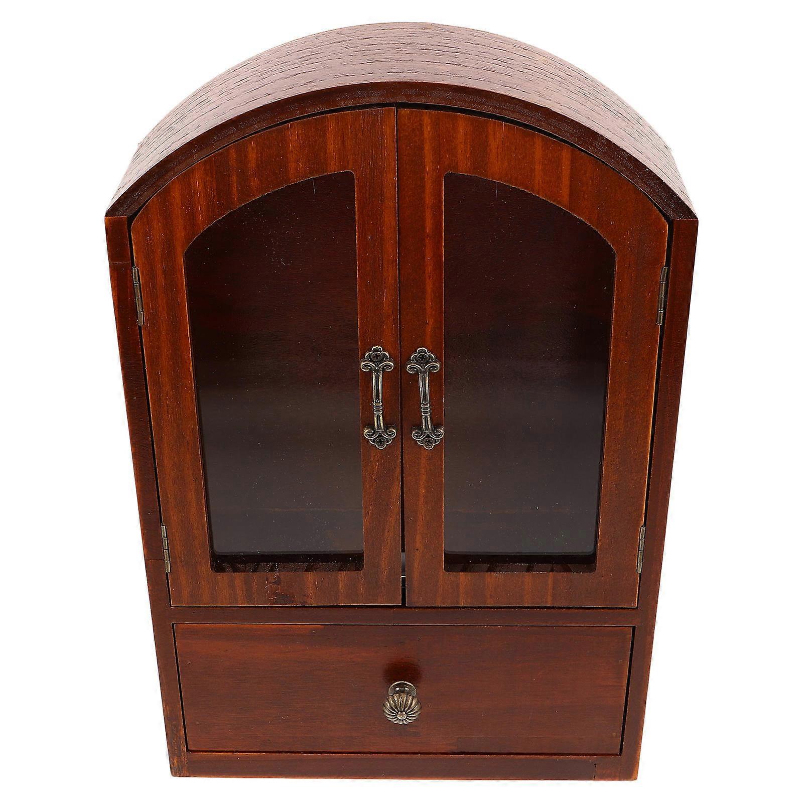 This desktop storage cabinet is designed to keep your workspace organized and clutter-free. Crafted from wood, it features a charming retro style with a glass door that adds a touch of elegance. Ideal for storing cosmetics, office supplies, or miscellaneous items, it seamlessly blends functionality with aesthetic appeal. Features -Color:Coffee -Material:Wood, glass -Size:34.50X22.50X8.00cm/13.56X8.84X3.14in -Elegant glass door design: the glass door design adds a touch of elegance to your desktop, enhancing the overall aesthetic appeal -Sturdy wood construction: made from sturdy wood, this organizer ensures use and effectively tidies up your workspace, eliminating clutter -Drawer storage: featuring drawer, it allows easy categorization of cosmetics and miscellaneous items, improving daily makeup efficiency -Versatile home fit: this desktop storage cabinet fits seamlessly into various home environments, saving space and keeping your desk neat and orderly -Convenient access: designed for easy access, it eliminates the need for frequent opening and closing, helping you quickly find what you need and save time Package list: 1 x desktop storage cabinet