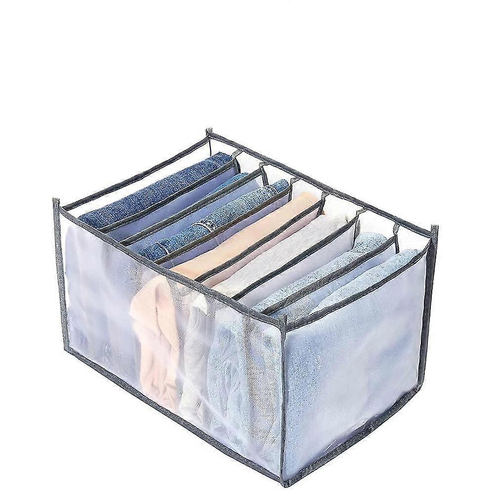 Upgraded Drawer Organizers for Clothing, Wardrobe Clothes Organizer, Large 7 Grids(Grey Net Yarn)