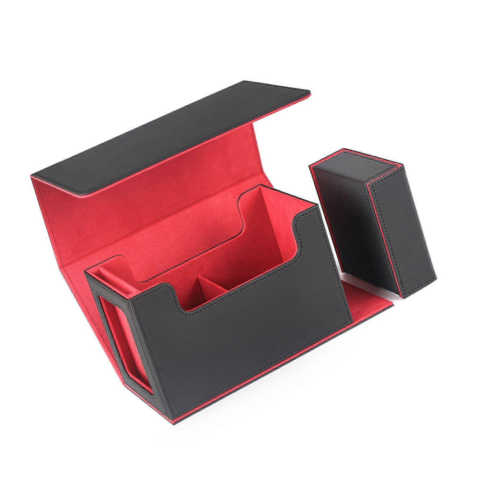 Card Deck Case Organizers PU Trading Card Deck Storage Box Gathering Card Container with Dice Tray for Game Card Storage Black red