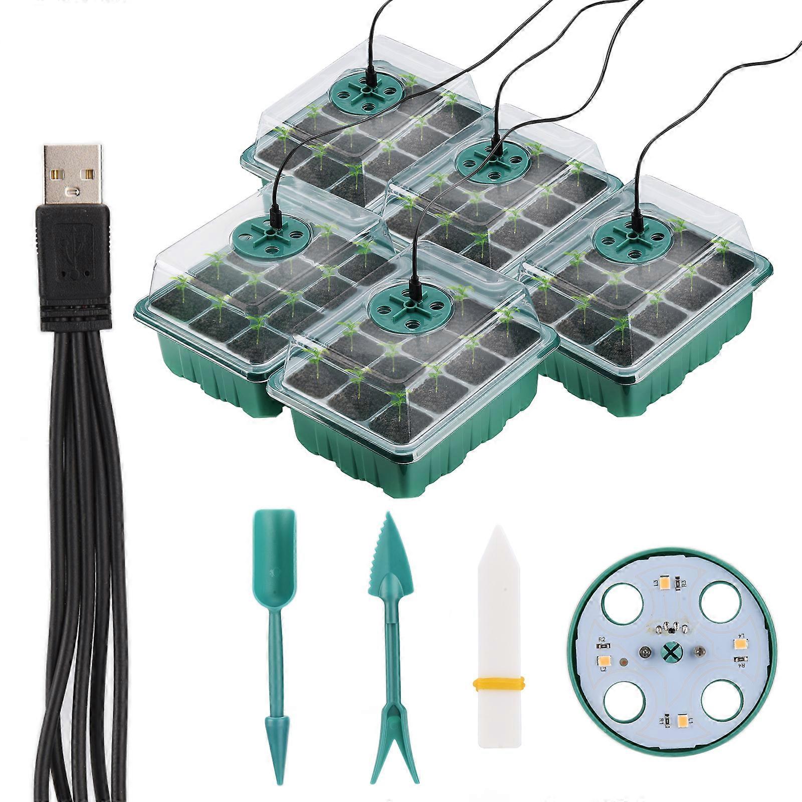 Storage Case Seed Starter Kits Fill Light 5 Sets Of Seedling With Lamp Durable Plastic Gardening Tools Nursery Pot