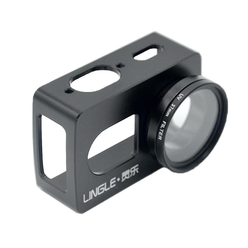 Aluminum Frame Case with Screw Lens Cap + UV Filter for Xiaoyi 2 II 4K Black