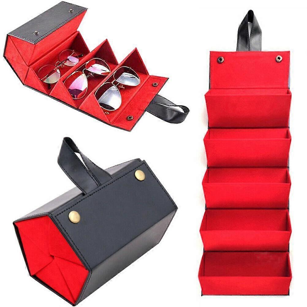 Portable PU Leather Sunglasses Case 5 Slots 6.50x4.70x3.20 Inch Black Red