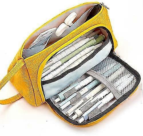 Big Capacity Colored Canvas Pencil Pen Case, Large Multifunction Pencil Pen Holder Organizer Bag