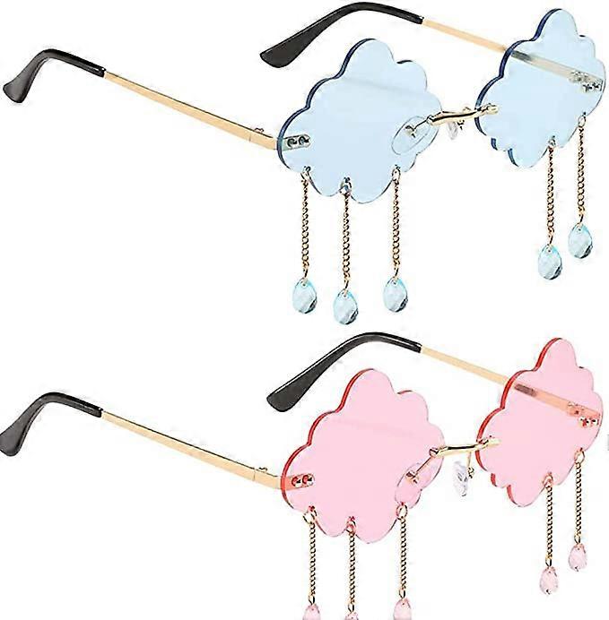 Pack of 2 Rimless Colourful Sunglasses, Irregular Sunglasses, Metal Cloud Sunglasses (Black, Red)