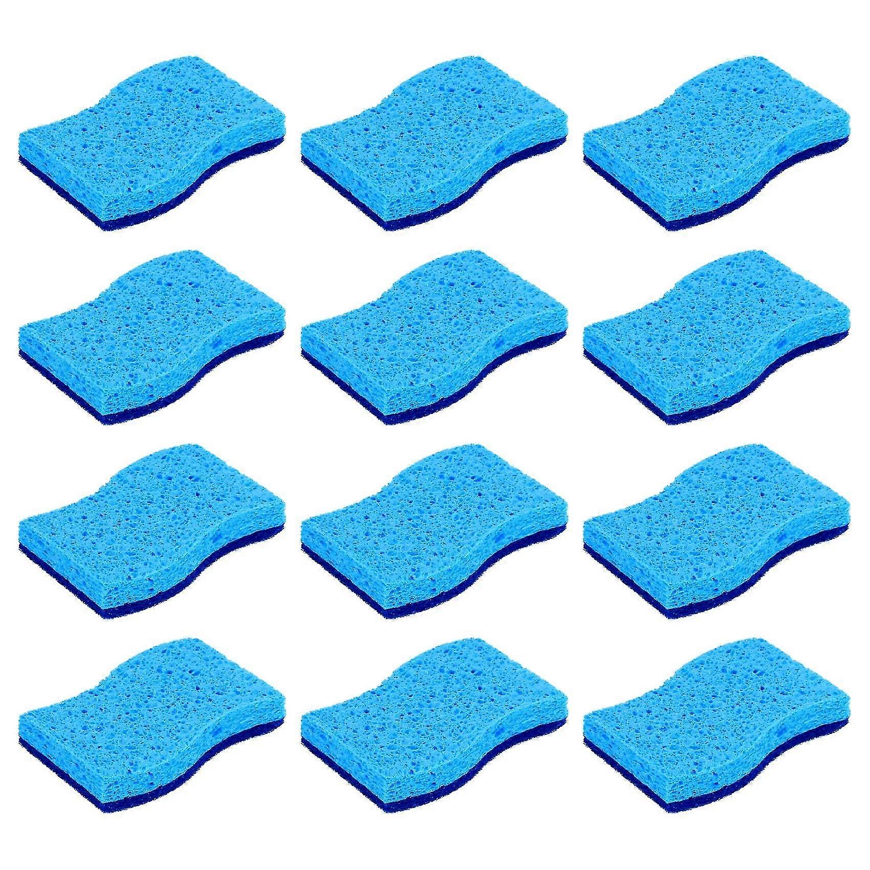 12 Pack Non-scratch Cellulose Scrub Sponge Kapok Cotton Dishwashing Brush, Dual-sided Dishwashing S