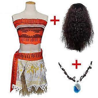 Adult Kids Princess Vaiana Moana Costume Dresses with Necklace Wig Women Girls Halloween Party Moana Dress Costumes Cosplay