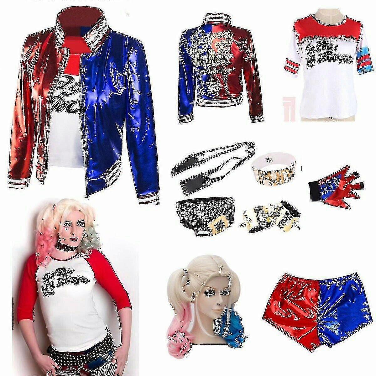 Adult Kids Girl Halloween Cosplay Suicide Squad Harley Quinn Costume Outfit 10 Piece Set-n