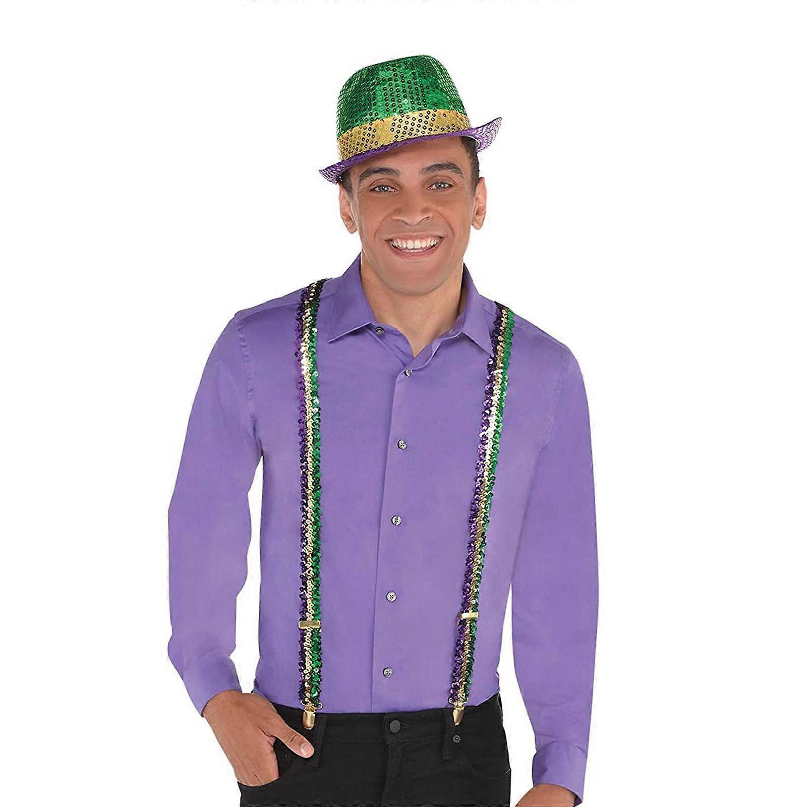 Adult LED Light UP Mardi Gras Fedora, Mardi Gras Costumes Accessory Mardi Gras Beads Necklaces Bow Tie Suspenders Mask, Hollywoods Style Mardi Gras Se