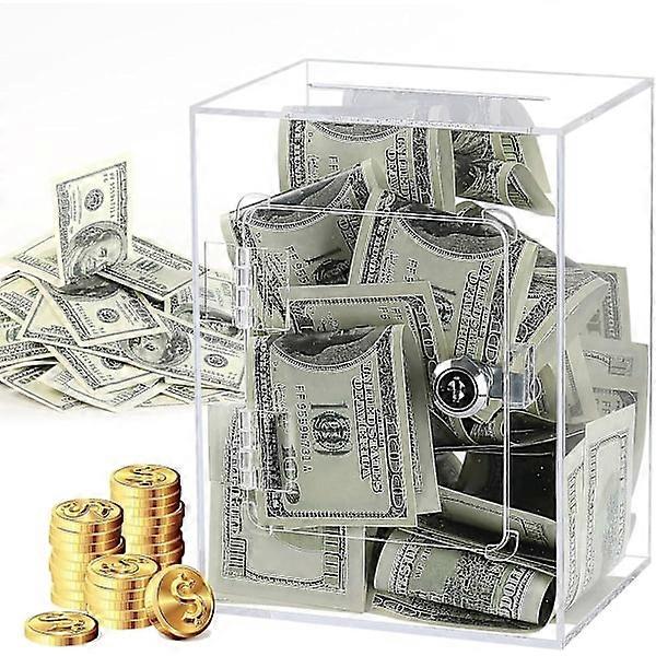 Adult Piggy Bank Clear Acrylic Money Bank Birthday Gift with Key Reusable