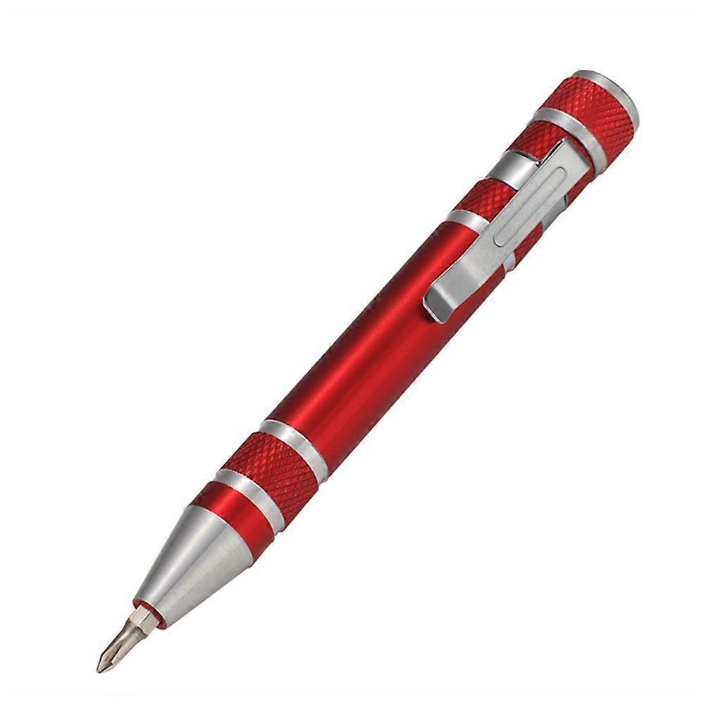 Small Screwdrivers Durable MultiFunction Screwdriver Pen Shape Easy To Carry 1Set 1Pen Tube 8Heads Aluminum Alloy Blue Red Silver