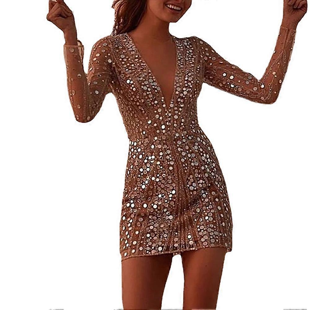 Shiny Deep V-neck Sequin Mini Dress - Elegant and Sexy Night Club Bodycon Party Dress