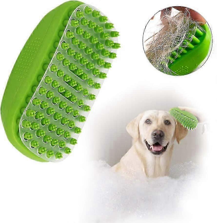 Dog Bath Brush, Pet Grooming Comb, Soft Rubber Massage Brush, Easy Hair Removal Shower Tool, Transparent Baffle Design (Green, 1 Set)