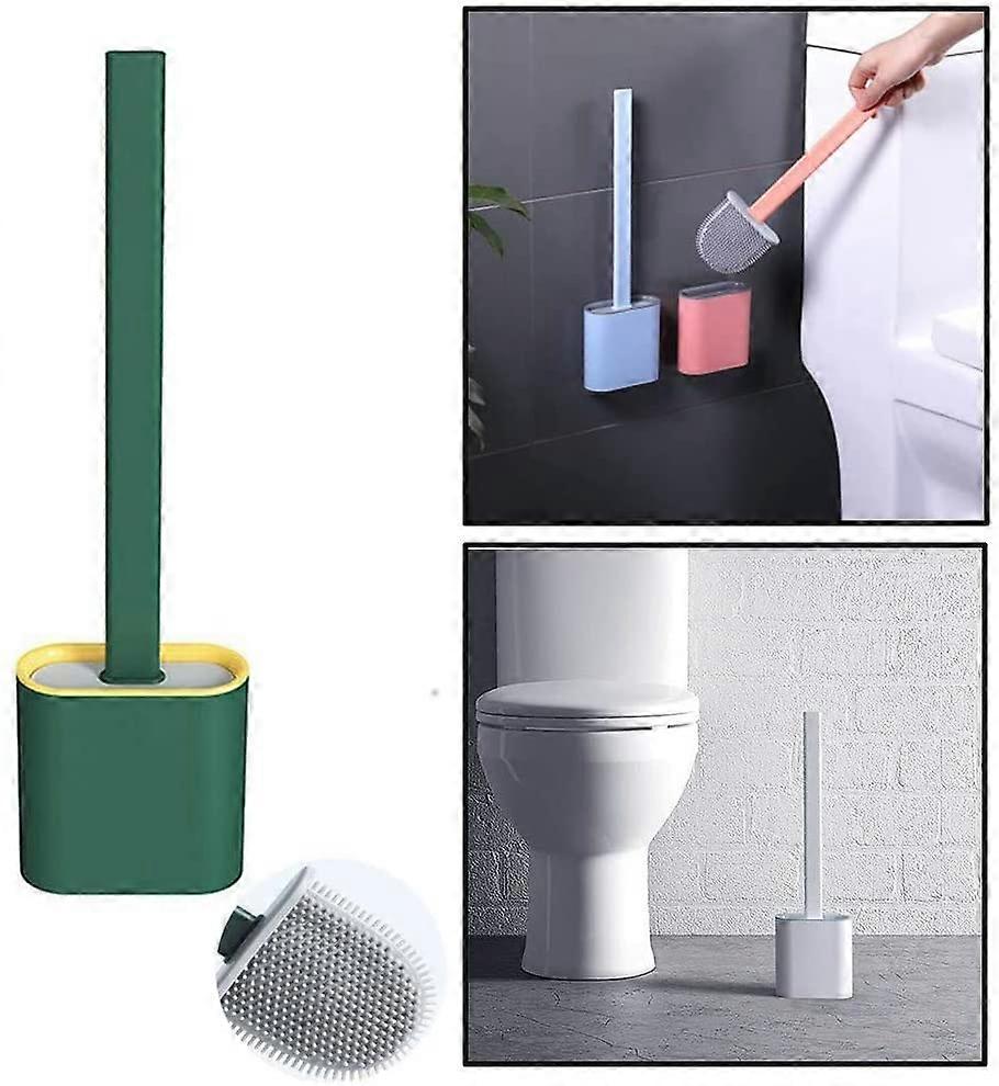 Toilet Brush,Silicone Toilet Brush with Fast Drying Holder Set,Wall Mounted Flat Flexible Deep Cleaning Toilet Brush(Green)