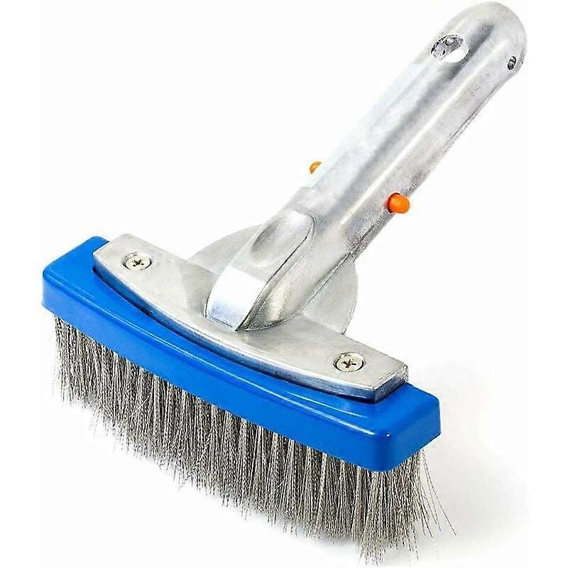 Pool brush, stainless steel brush head, wire bristles, for cleaning and scrubbing debris from the surfaces of all areas of a swimming pool - walls, ti