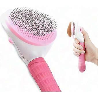 Self-Cleaning Pet Grooming Brush for Cats and Dogs - Removes Dead Hair & Lint for Long & Short Haired Pets (Pink)