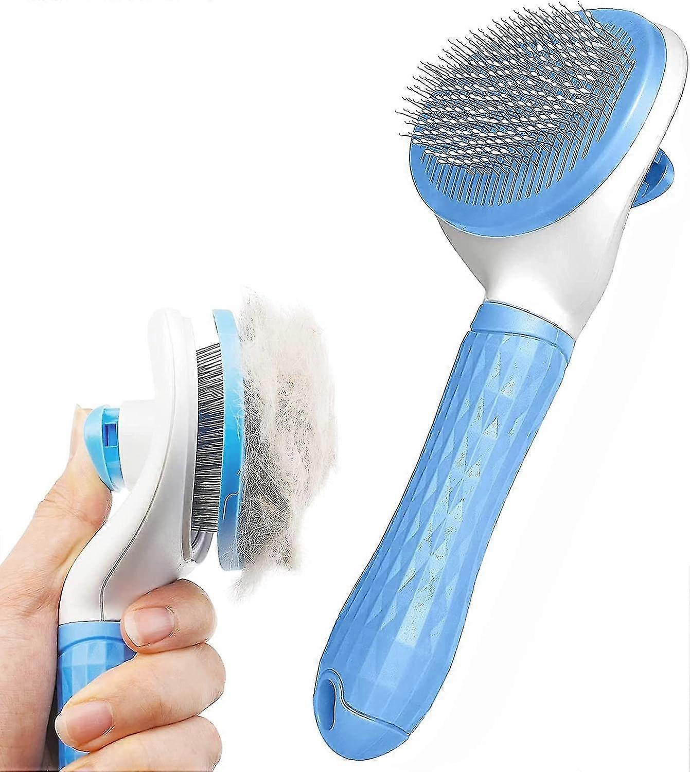 Dog Brush Cat Brush Grooming Comb,Self Cleaning Cat Dog Slicker Brushes with Smooth handle,Pet Grooming Tool with Cleaning Button for Cat Dog Shedding