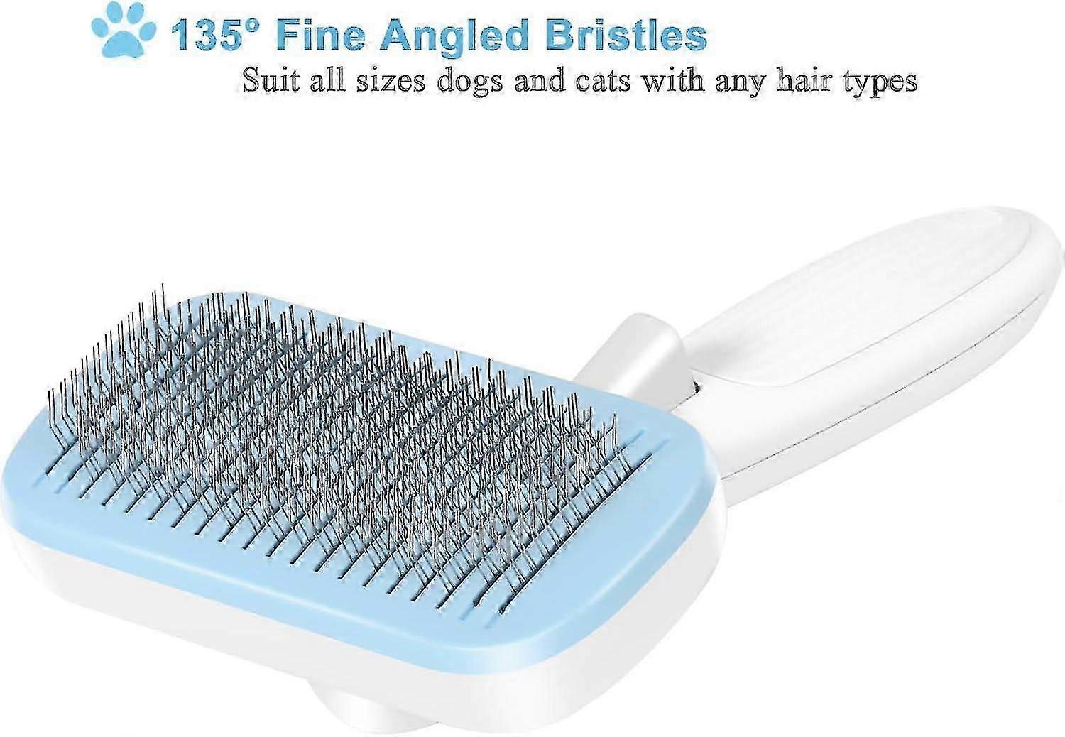 Multifunctional: The dog brush not only gently removes fur, carpets, rugs and dirt from your pet's fur. But also massage your pet, which promotes blood circulation for healthy life. [Self-cleaning button] Just press the self-cleaning button after taking care to let the blade enter, so that debris can be removed from the brush quickly and easily. This saves a lot of time and energy for grooming and cleaning. Safe and Comfortable Bristles: The fine, curved stainless steel bristles penetrate deep into the pet's fur to take good care of the undercoat without scratching your pet's skin. [Ergonomic handle] The dog brush has a comfortable and ergonomic handle with a non-slip texture which reduces the pressure on the hands. The specially developed extended handle makes it easy to grip [Protective cover] The transparent protective cover protects the stainless steel bristles during grooming, and at the same time prevents your pets and children from getting scratched when not in use. You can just cover it in time.
