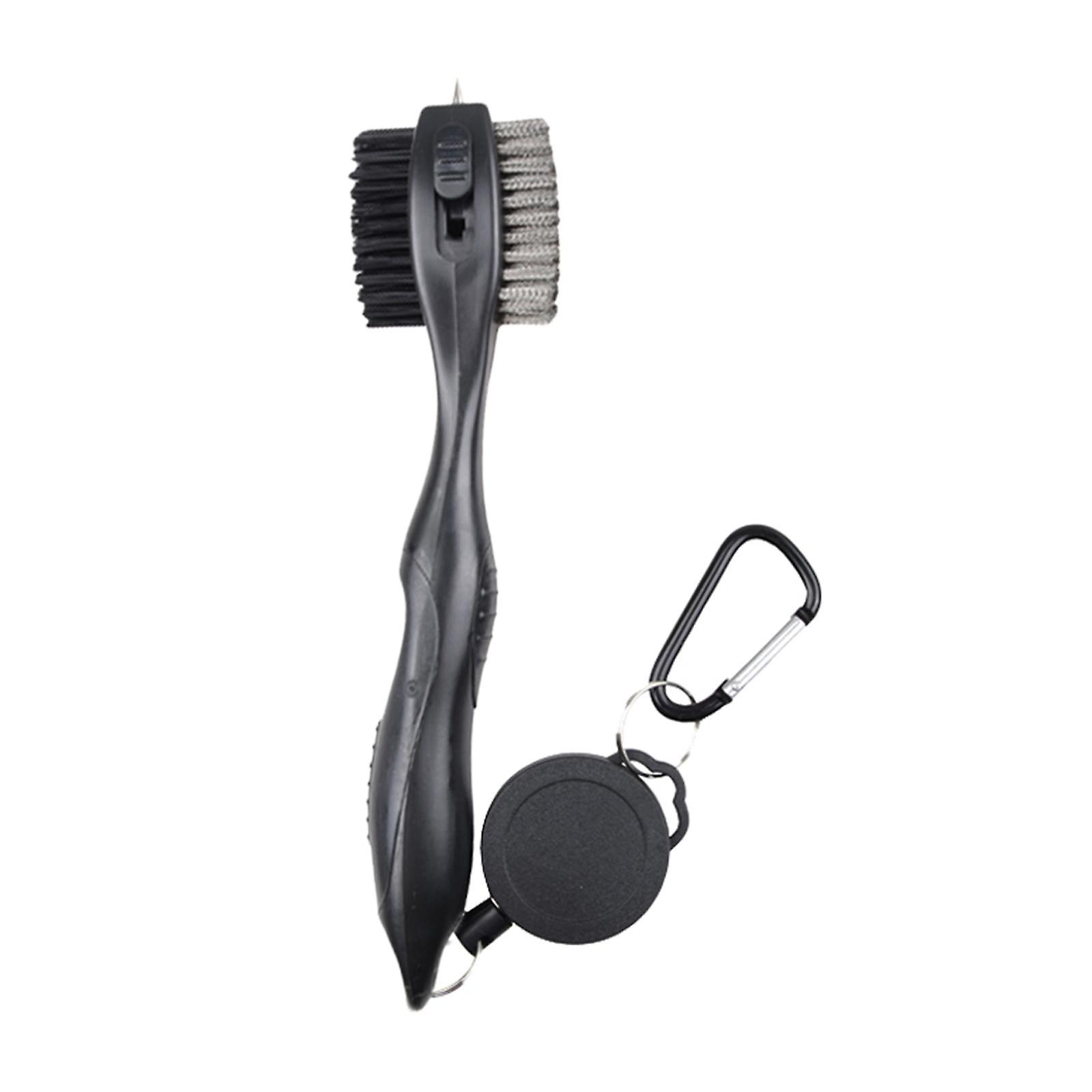 Portable Golf Club Brush Groove Cleaner Retractable for Golf Bag black