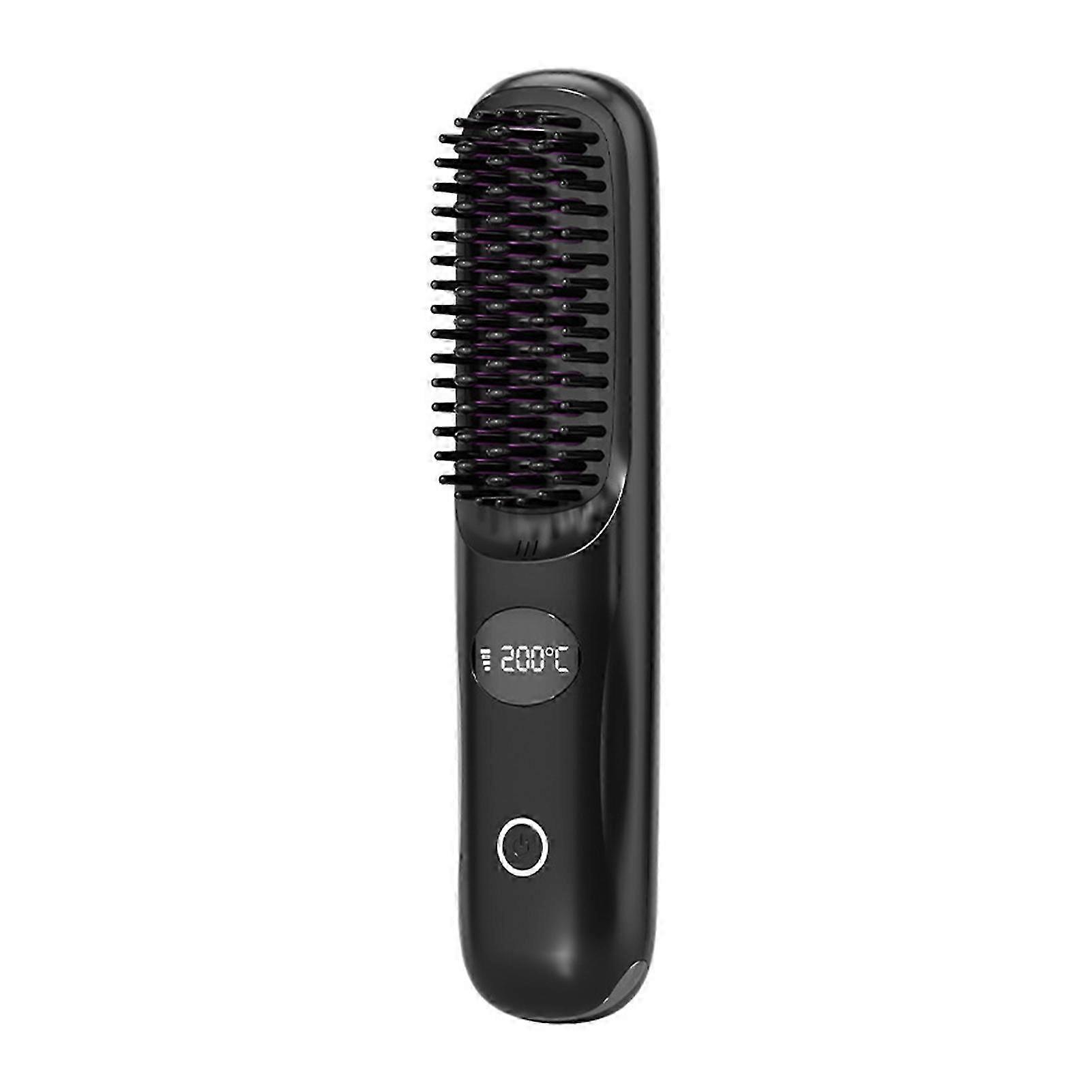 Portable Cordless Hair Straightener Brush with 3 Settings Anti-Scald Ceramic Heating Electric Comb for Home Travel