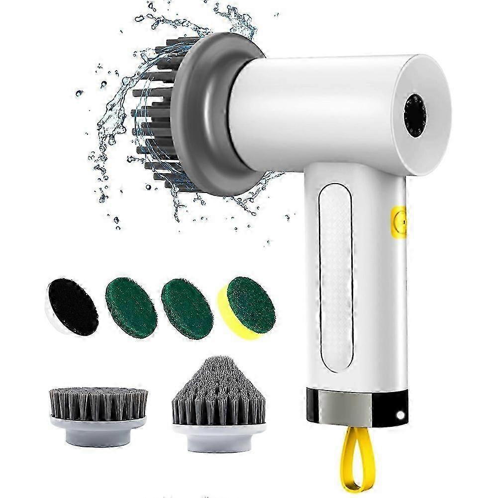 Electric Cleaning Brush: The electric cleaning brush uses artificial intelligence technology and fluid dynamics design. Anti-splash swirl for cleaning, increased bristle density for long-lasting shape, and gear indicator light are some of its great features. A white flashing light will warn you when the battery is low. The electric rotary scrubber comes with 5 interchangeable cleaning brush heads, ensuring you can clean a of surfaces with ease. Flat brushes clean large flat areas such as shower walls, counters, and tubs. The corner brush is Perfect for cleaning tile grout, edges and corners. Scouring pads are used for kitchen cleaning such as ovens, stoves, ranges, sinks, pots, etc. Sponges can effectively clean siding and glass. the long cord, you can easily use this cordless shower brush to clean any corner of , no more hassle of plugs and cables. Ergonomic high-quality silicone grip allows for a firm grip even if your hands are sweaty or wet; Super , even children can use it easily. You will find that cleaning your house becomes so easy. 2 MODES - POWERFUL AND EFFICIENT Scrubber: Our electric cleaning brush features a 3000 mAh battery with up to 90 minutes of runtime. Press twice to activate the portable power scrubber. With smart 360 rotation and two adjustable rotation speeds, you can easily remove dirt in no time. The powerful motor spins the brush at up to 380 rpm and completes any task in no time! IPX6 WATERPROOF: Our cordless electric shower cleaning brush is IPX6 waterproof, making it Perfect for all types of household cleaning tasks. After use, simply rinse under the tap to get a new brush. The brush is also so you can use it for years. Cleaning has never been easier and more efficient ! Material: ABS colour: white Package Contents: 1 x Electric cleaning brush 1 xUSB cable 1 set x brush heads Only the above package content, other products are not included. Note: Light reflection and different displays may cause the color of the item in the picture a little different from the real thing. The measurement allowed error is +/- 1-3cm.