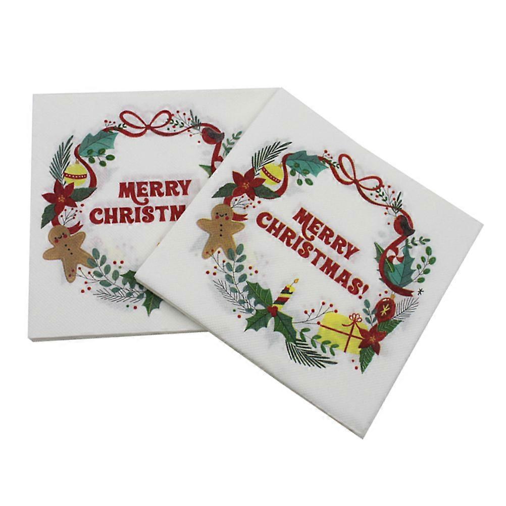 Hand Paper Towels Cartoon Wreath Design Christmas Party Supplies Durable Square Napkin 33x33x0.1cm 40Set