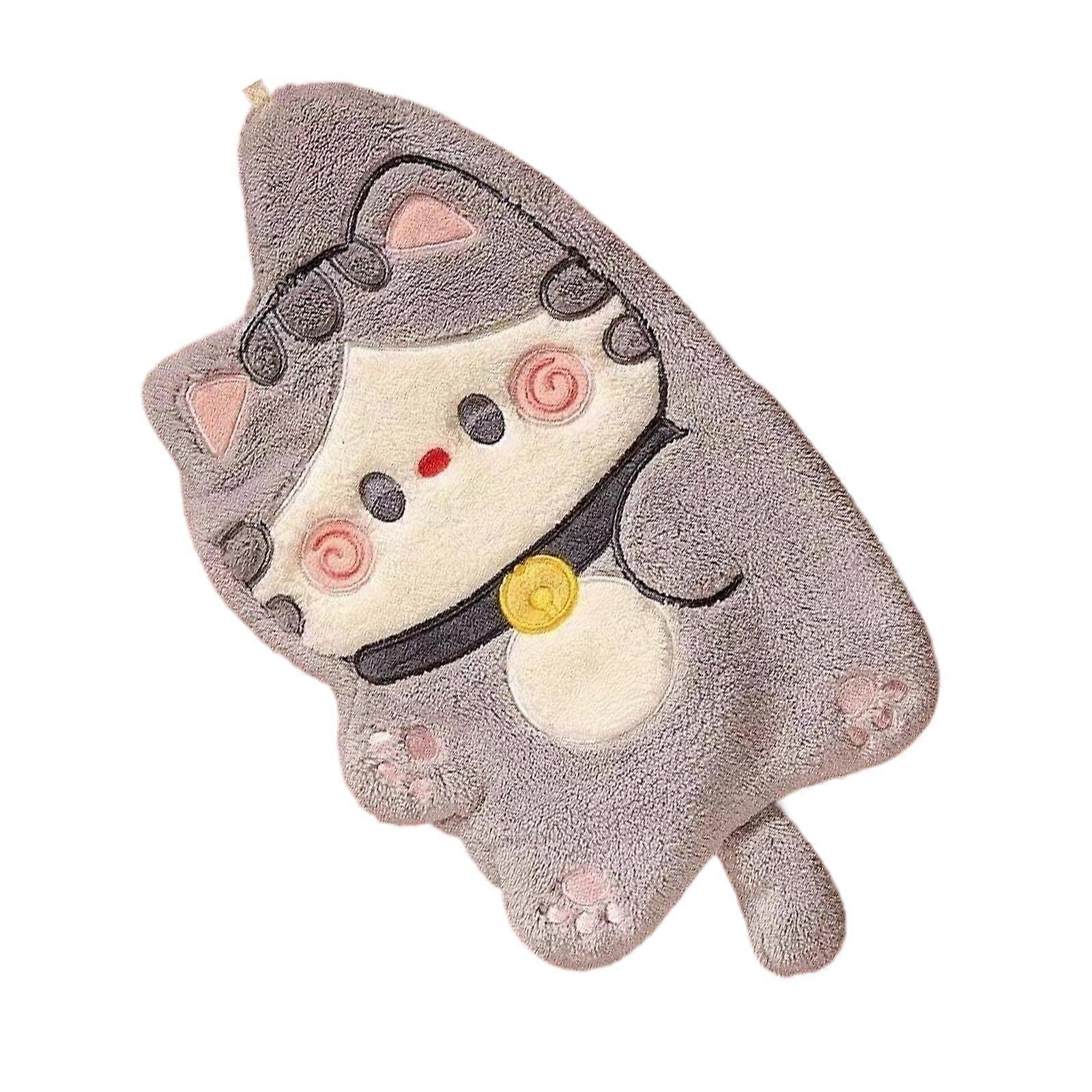 Cute Cartoon Moggie Hanging Hand Towel Absorbent Coral Fleece Soft Skin Friendly Towel For Kids Adults Kitchen Bathroom Grey cat Length and width 33