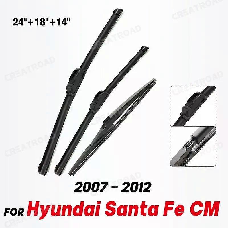 Wiper Front & Rear Wiper Blades Set Kit For Hyundai Santa Fe CM 2007 - 2012 Windshield Windscreen Window 24+18+14