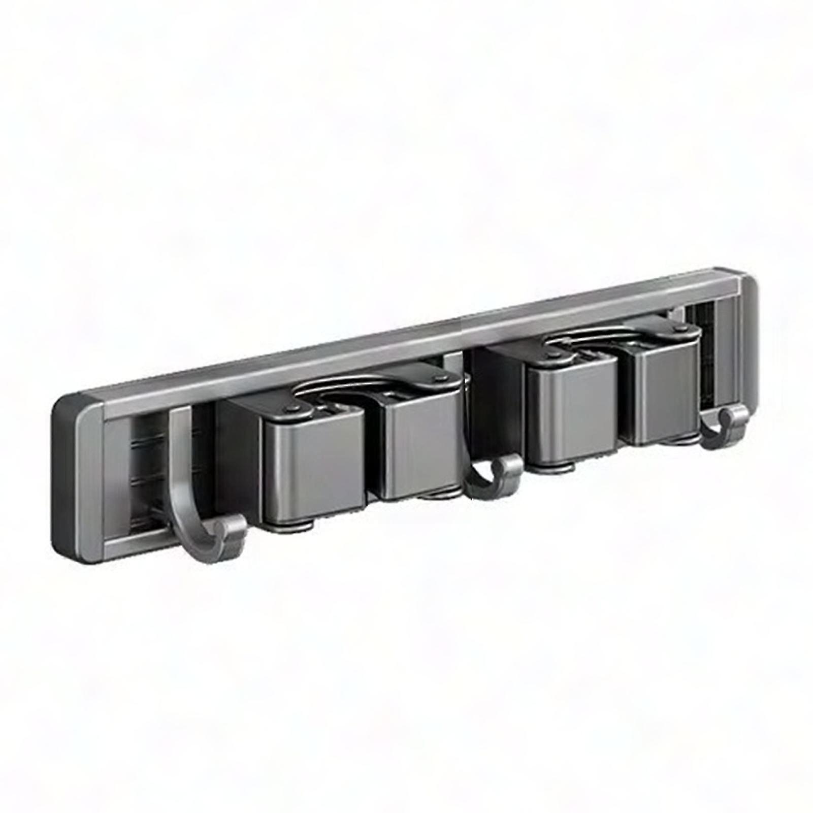 Wall Mount Mop and Broom Holder with 5 Hooks - No Drill Waterproof Anti-Slip Roller Design, Heavy Duty Bathroom Kitchen Organizer Rack