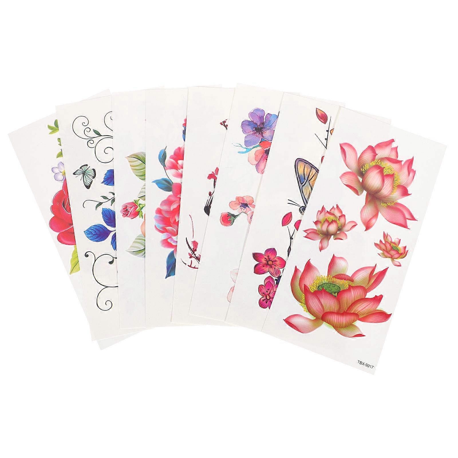 Assorted Color Floral Tattoo Stickers Body Decoration Outing Use Paper Material Temporary Tattoo 8Pcs