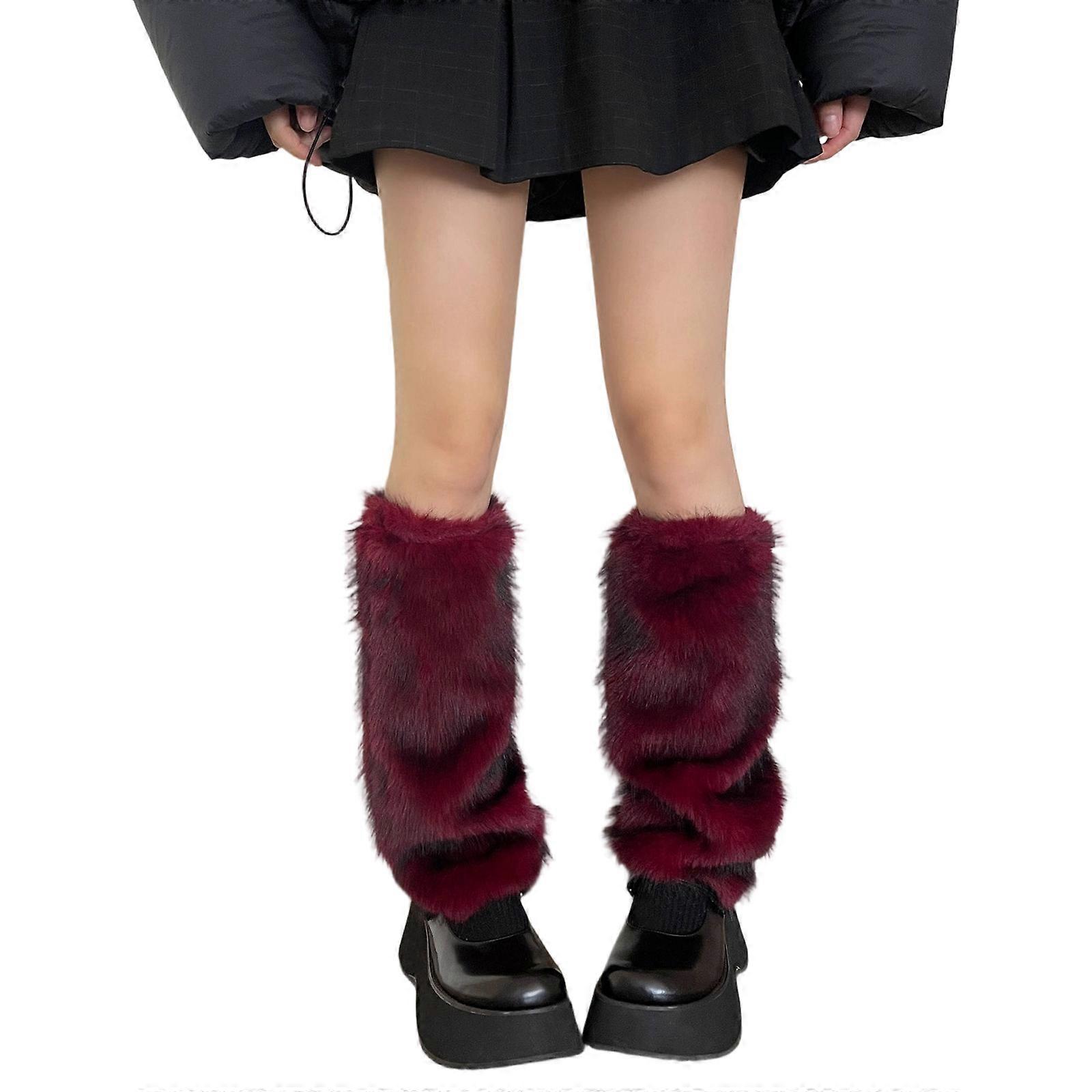 Multi Purpose Plush Leg Protectors Elastic Edge Design Socks Cover Winter Warm Legwear For Women Indoor Outdoor Burgundy Longstyle