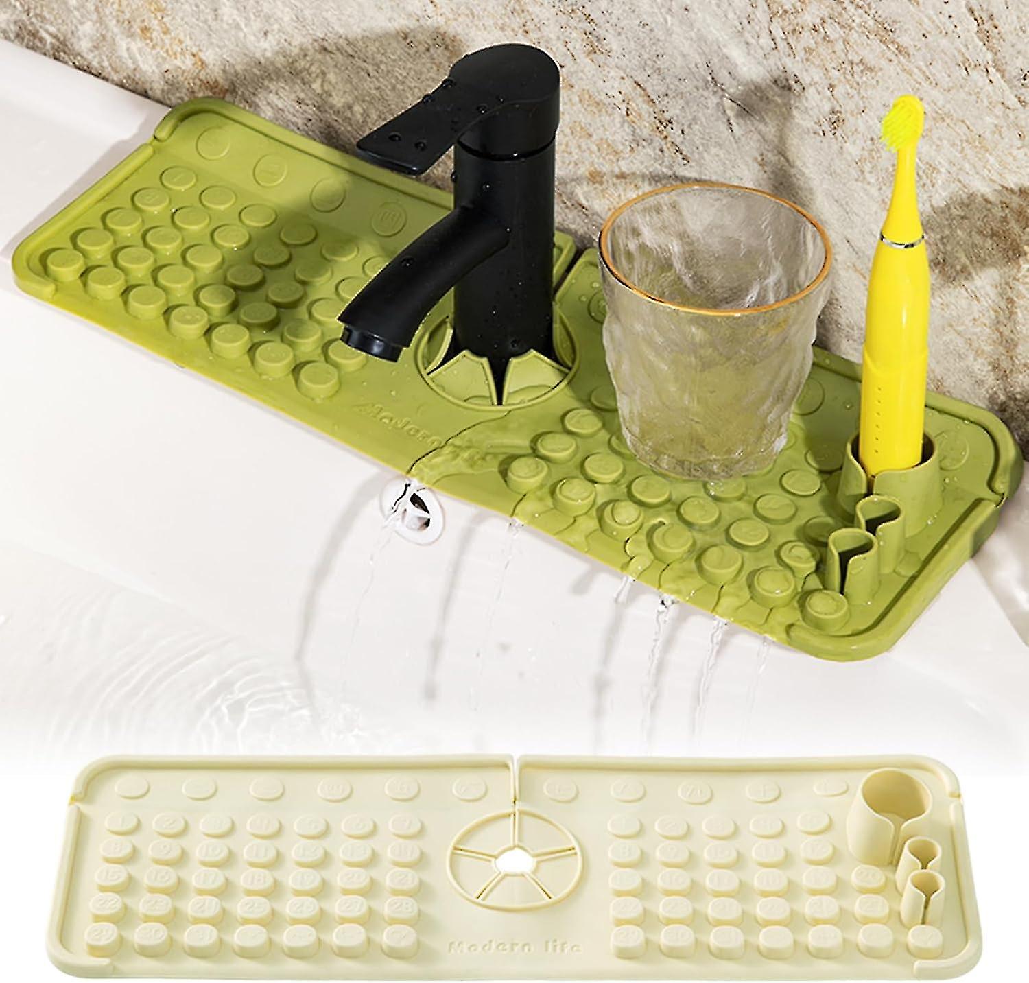 Kitchen Sink Splash Guard With Toothbrush Holders, Silicone Sink Draining Mat Behind Faucet, For Kitchen Bathroom Sink Protectors Accessories