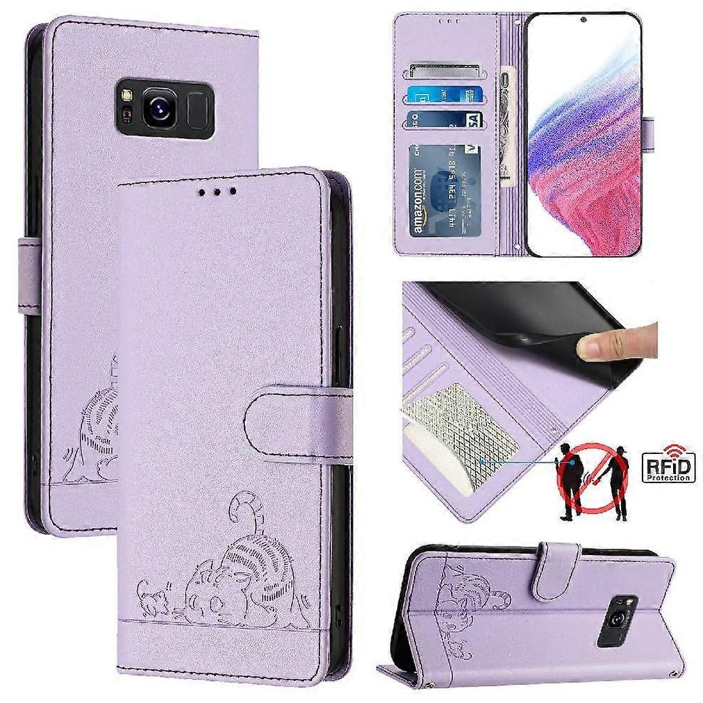 Case For Samsung Galaxy S8 Card Slot Holder Kickstand Wallet Flip Cover Cat RFID