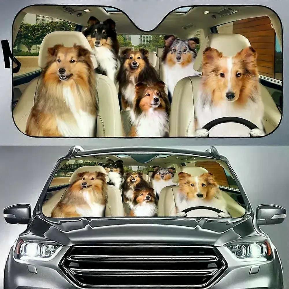 unique Shetland Sheepdog Family Driving Car Sunshade, Car Full of Shelties Car Windshield Sun Visor, Gift for Dog Mom Pet Lovers, Uv Pr