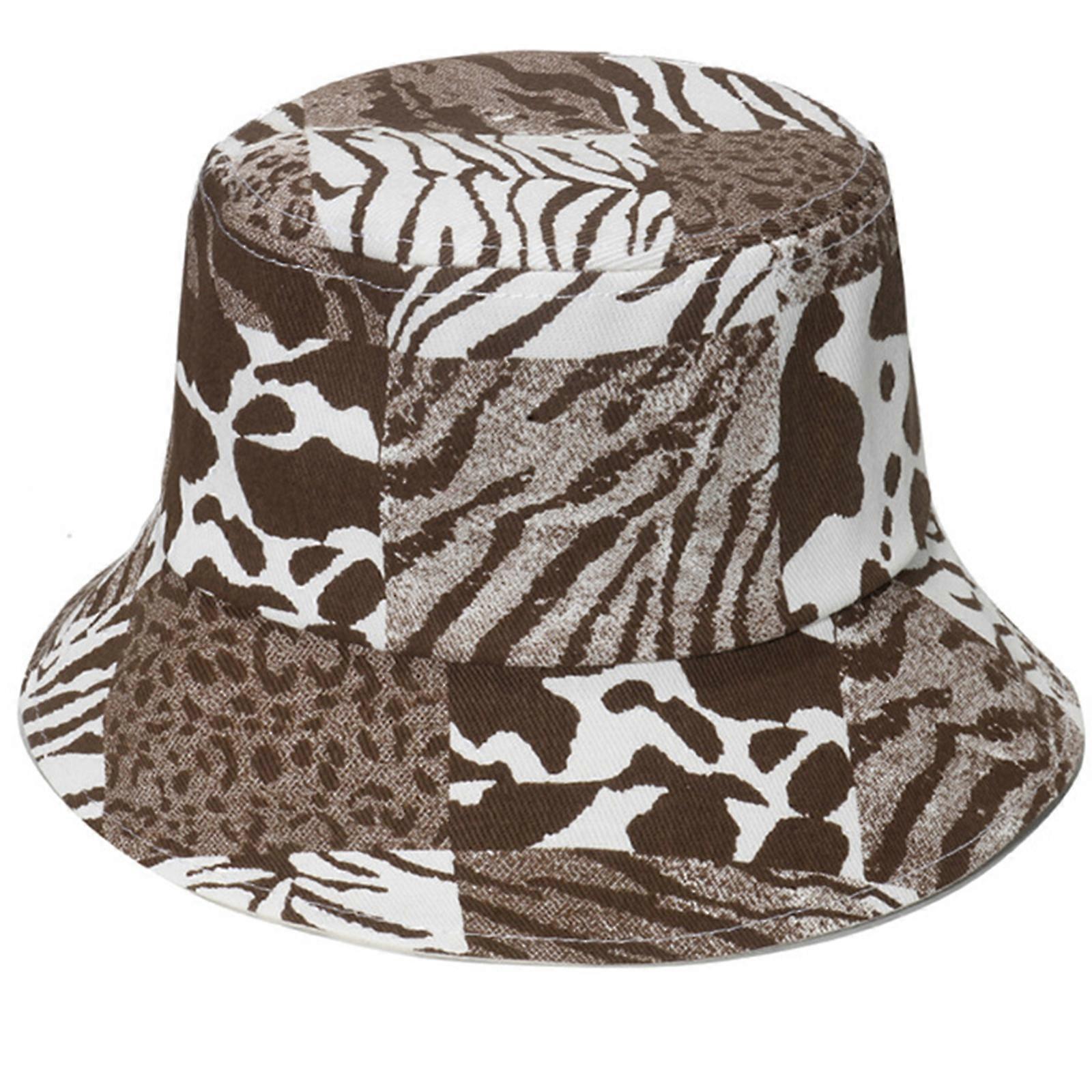 Cool Bucket Hat Animal Pattern Stitching Fisherman Hat Portable Unisex Summer Beach Cap for Outdoor Travel Work Daily D