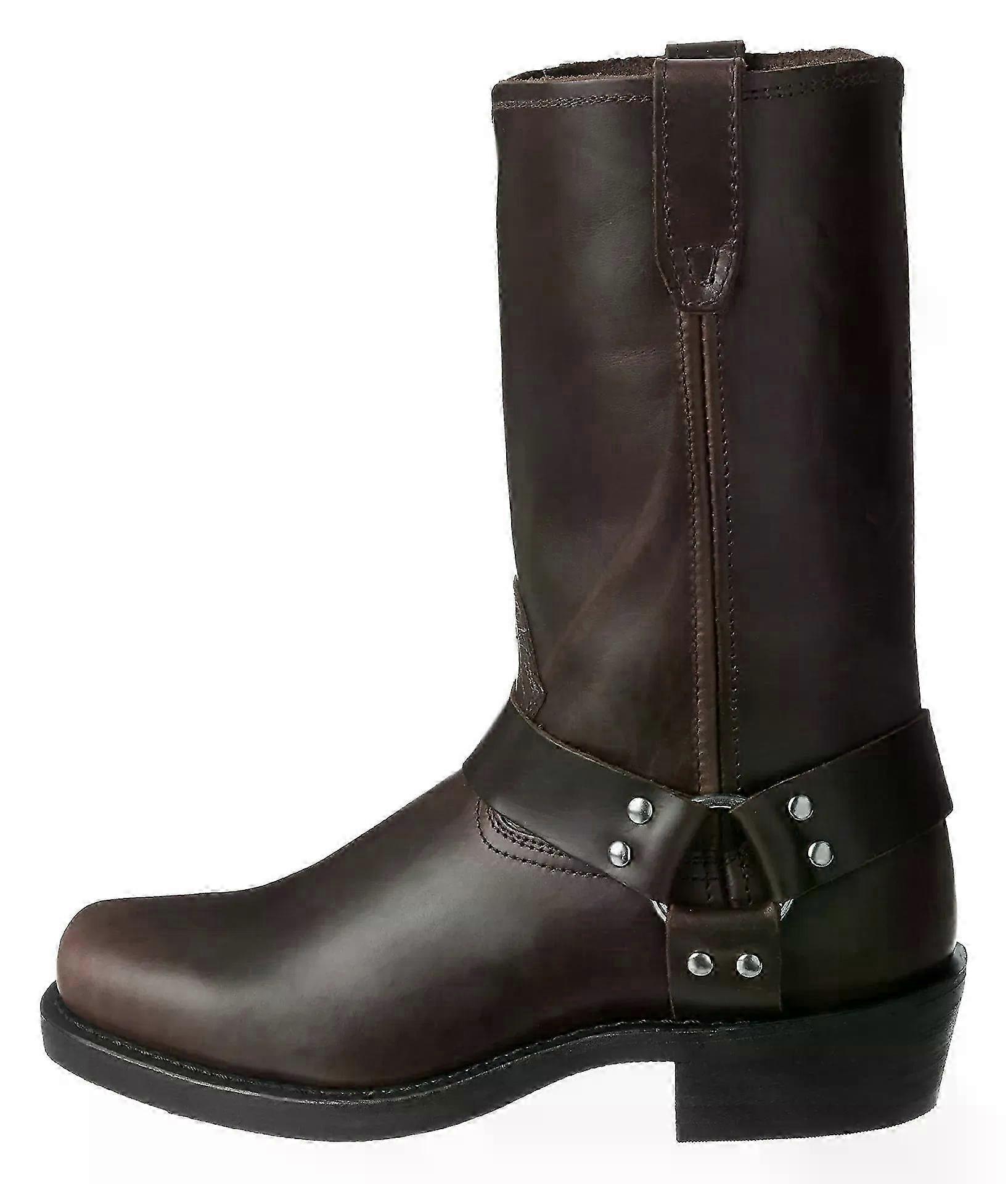 Vintage Men's Cowboy Boots Belt Buckle Ring High Top Motorcycle Boots Fashion Square Toe Warm Footwear
