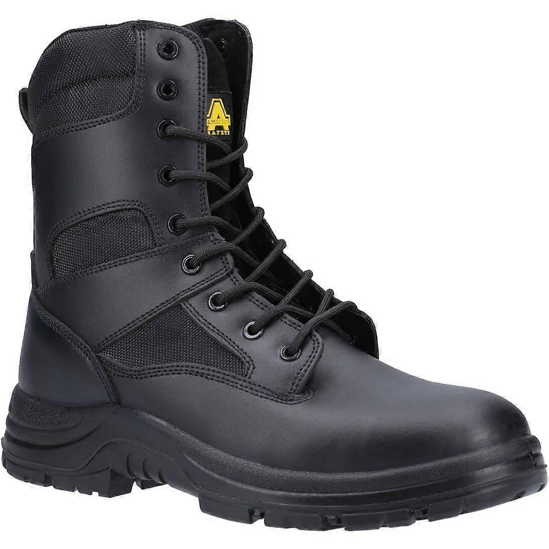 Introducing the Amblers Fs009C High-Leg Safety Boots, a robust choice for professionals seeking unparalleled protection and durability. These metal-free safety boots are designed with a composite toe cap and midsole for superior penetration protection, ensuring your feet are safeguarded against potential hazards. The boots feature a water-resistant upper made from high-quality leather and breathable mesh, coupled with a dual-density PU sole that offers exceptional comfort for long hours on your feet. The secure lace-up front with nine plastic eyelets ensures a snug and secure fit, making these boots a reliable companion for any demanding work environment.